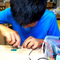 次の作品は、気温等の情報をインターネット経由で確認できるシステム構築を目指すように決めたようです。いわゆる、IoTですね。センサは自宅の他に、おじいさんの家にも設置したいと話してくれました。